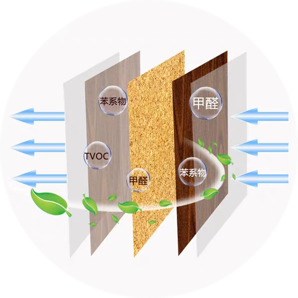 產(chǎn)品具有催化分解甲醛、甲苯、苯、二甲苯、氨、TVOC、六大污染物